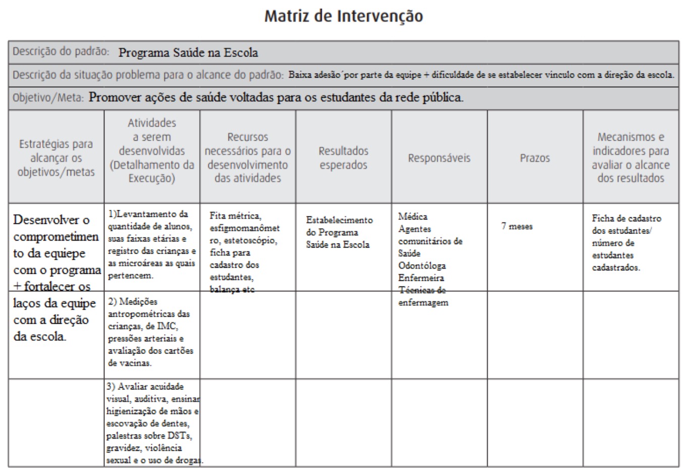 A equipe já havia tentado há algum tempo entrar em contato com a direção da escola do bairro para instituir atividades relativas ao PSE, no entanto, em virtude da falta de compromisso e adesão da própria equipe houve uma grande resistência e desinteresse quando foi tentado restabelecer o contato e agendar uma reunião.